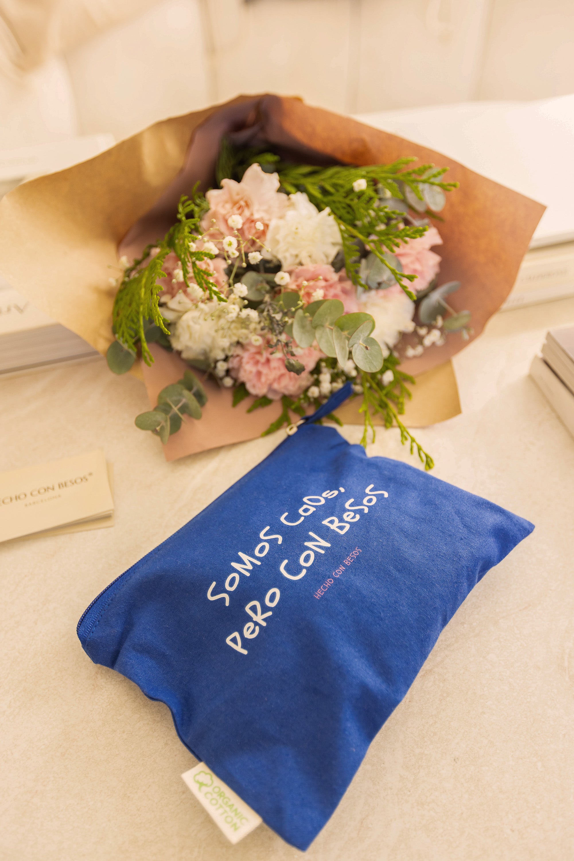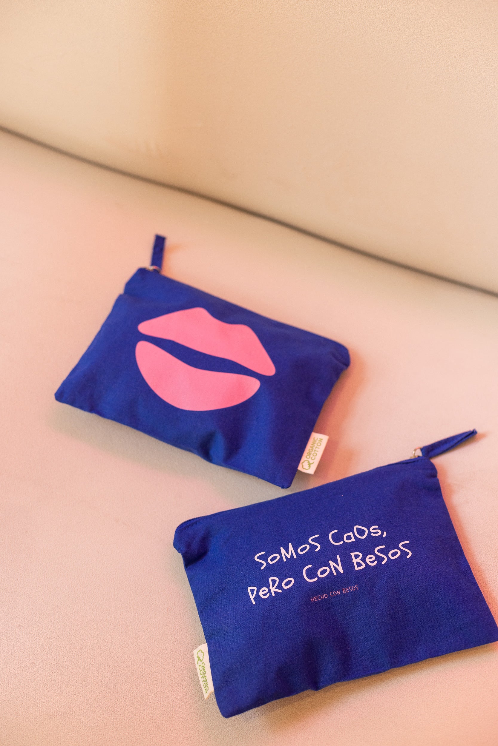 El Neceser BESO "Somos caos, pero con besos" combina practicidad y estilo con un diseño compacto y divertido. Perfecto para organizar tus productos de belleza o accesorios, destaca por su mensaje original estampado, que refleja la esencia única y desenfadada de la colección HECHO CON BESOS.