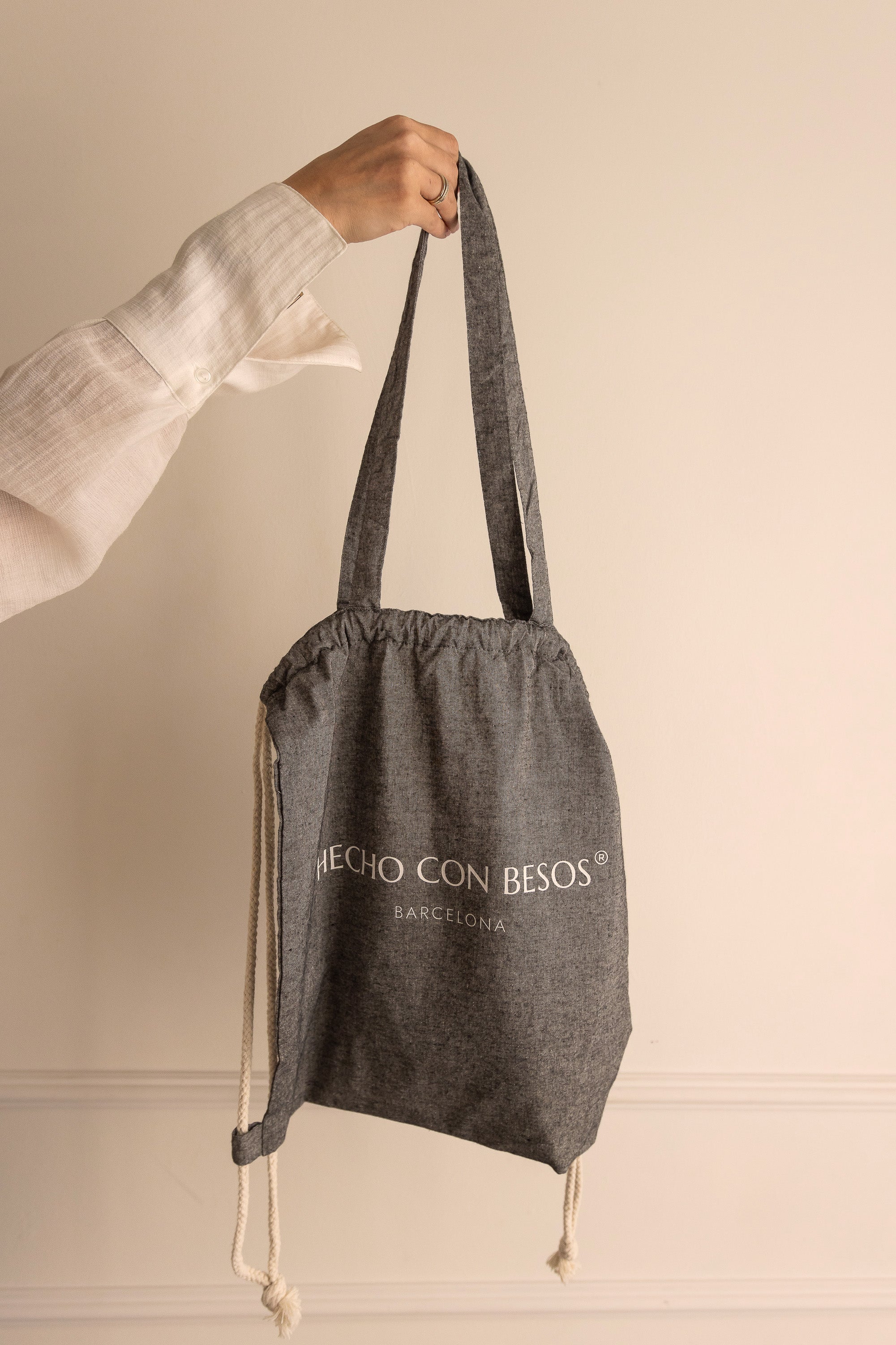 Lleva estilo y positivismo con nuestra tote bag color gris, confeccionada en algodón reciclado. Su frase estampada “HECHO CON BESOS” en blanco aporta un toque alegre y motivador, combinando diseño eco-friendly, resistencia y funcionalidad, ideal para uso diario, trabajo o compras.