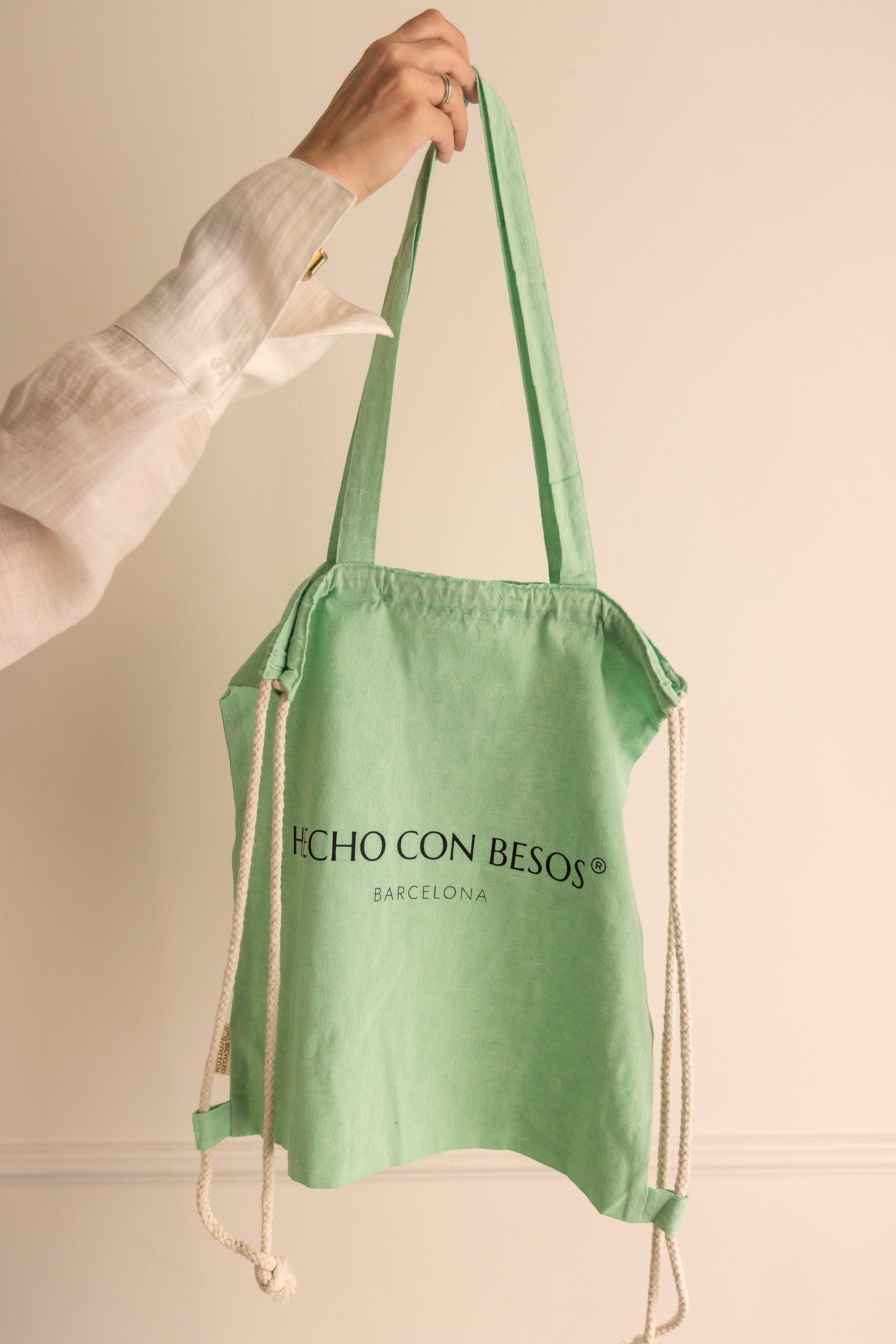 Lleva estilo y positividad con nuestra tote bag color verde matcha, confeccionada en algodón reciclado. Su frase estampada “HECHO CON BESOS” en blanco aporta un toque alegre y motivador, combinando diseño eco-friendly, resistencia y funcionalidad, ideal para uso diario, compras o trabajo.