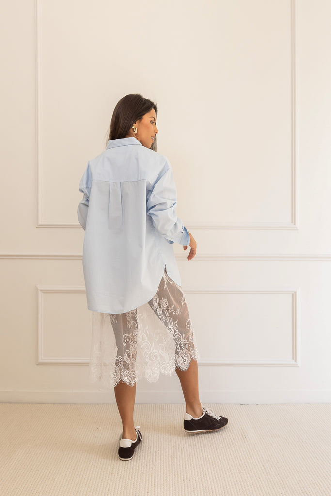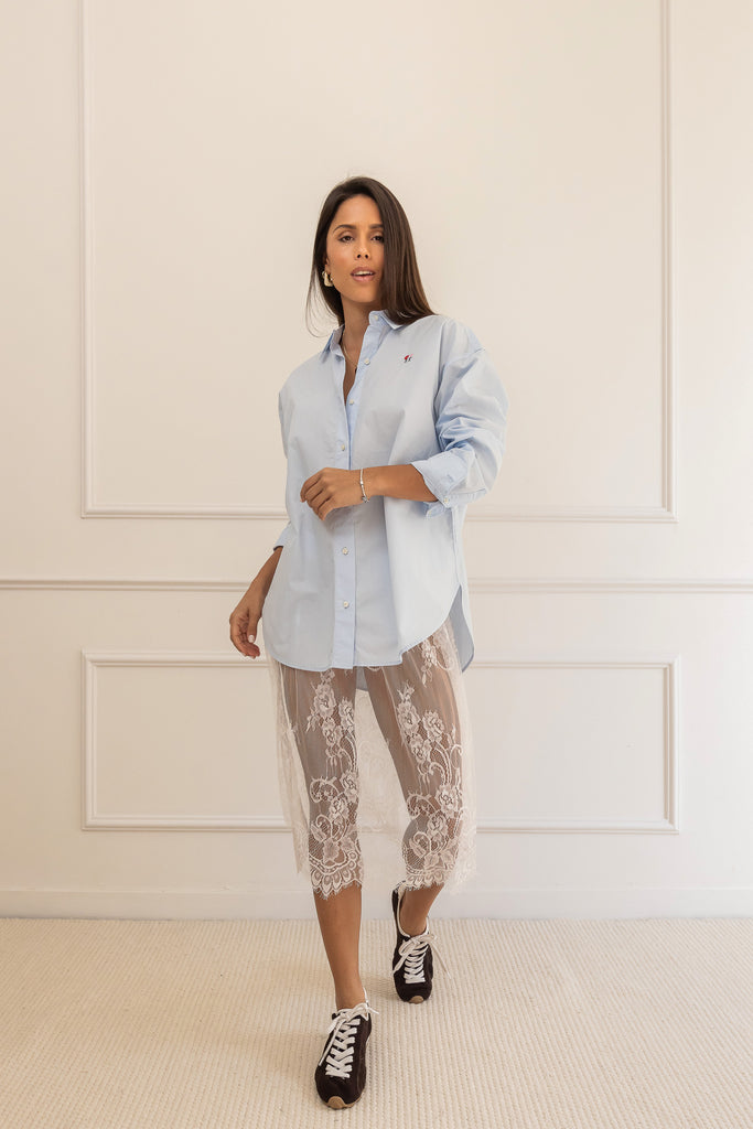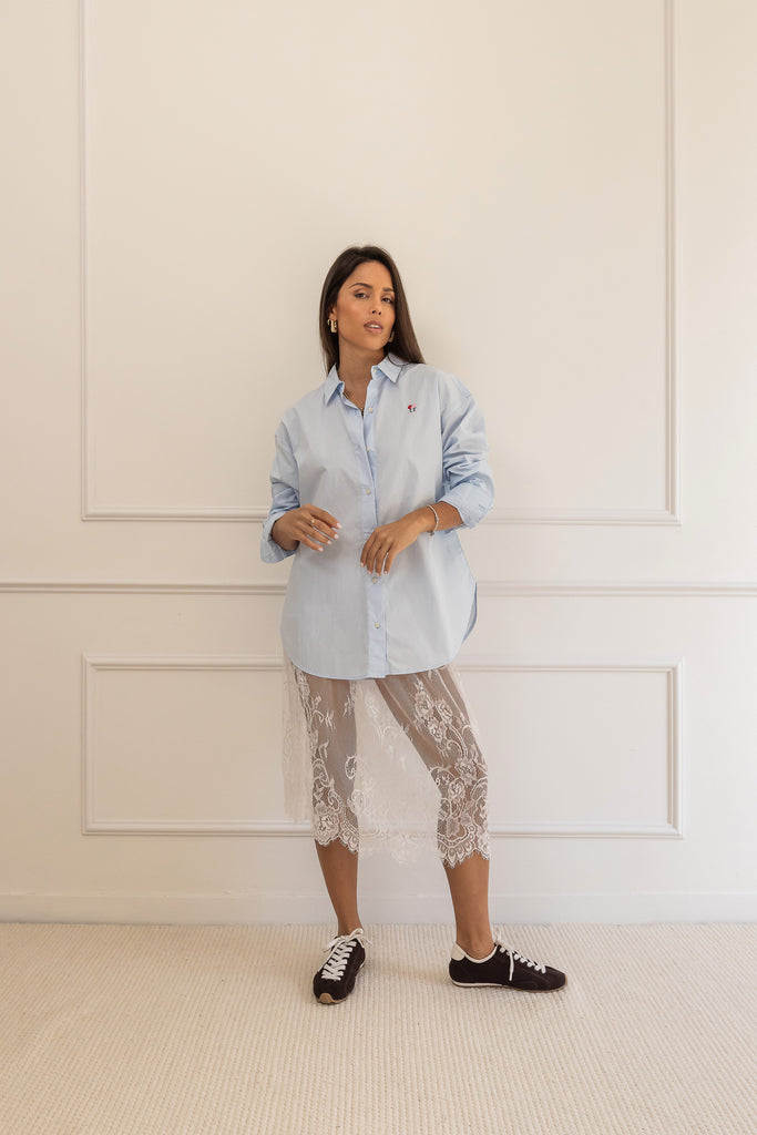 La Camisa BESTIES Blue combina estilo y frescura en un tono azul versátil y atemporal. Su diseño cómodo y moderno la convierte en una prenda esencial para cualquier look, reflejando la personalidad y actitud característica de la colección BESTIES.