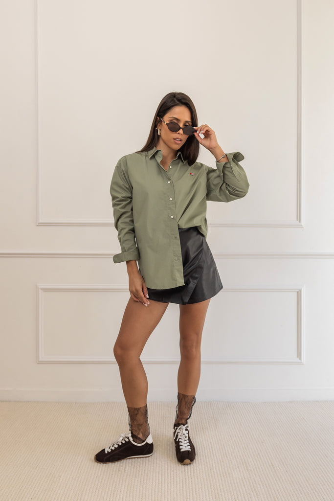 La Camisa BESTIES Olive destaca por su estilo fresco y versátil en un tono verde oliva elegante y atemporal. Su diseño cómodo y moderno la convierte en una prenda clave para cualquier look, aportando el equilibrio perfecto entre simplicidad y personalidad, sello característico de la colección BESTIES.