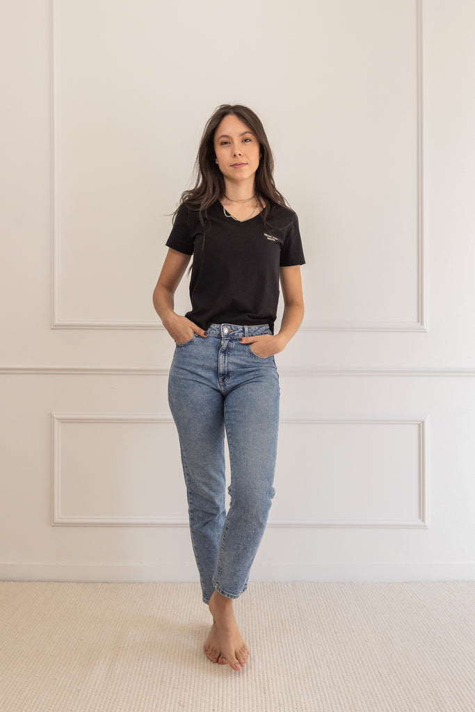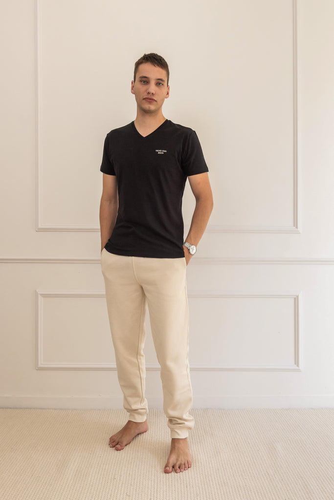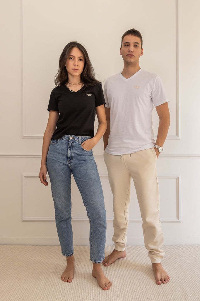 Camiseta negra hombre cuello en pico HECHO CON BESOS
