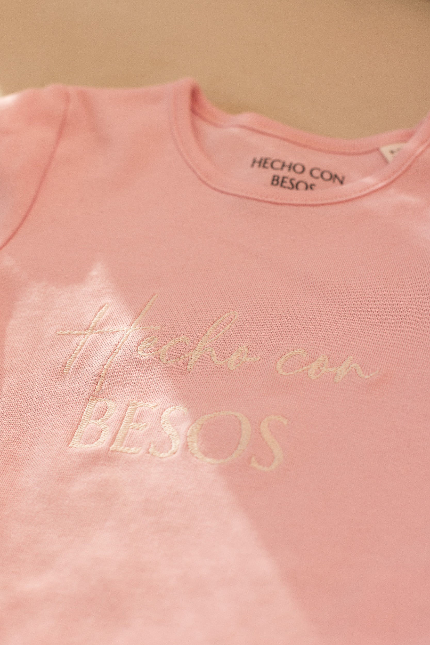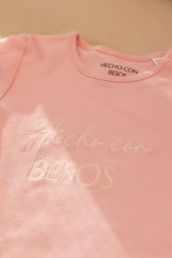 Bordado exclusivo “Hecho con Besos” en el pecho
