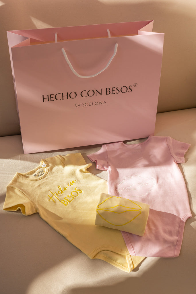 Envuelve a tu pequeño en suavidad y estilo con nuestro Body Rosa Bebé de algodón 100% orgánico, ideal para la piel delicada de los bebés. Su color rosa pastel aporta un toque dulce y tierno, mientras que el bordado “Hecho con Besos” en el pecho y un pequeño BESO bordado en la espalda reflejan el cariño y cuidado que ponemos en cada prenda.