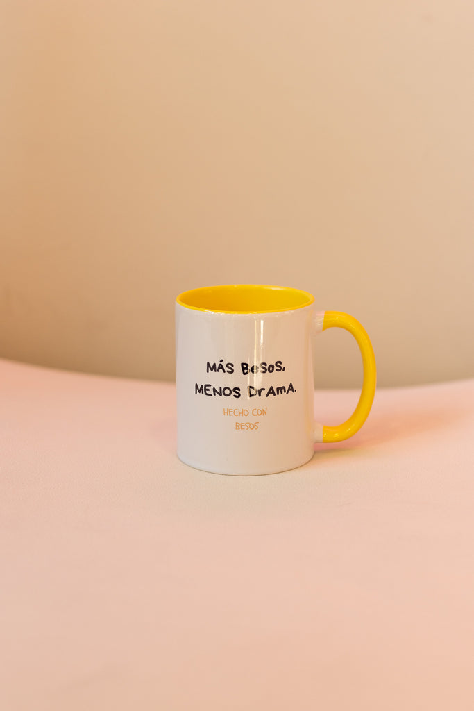 Taza Beso Amarilla "Más besos, menos drama..."